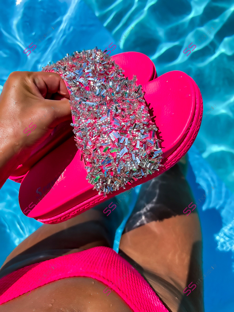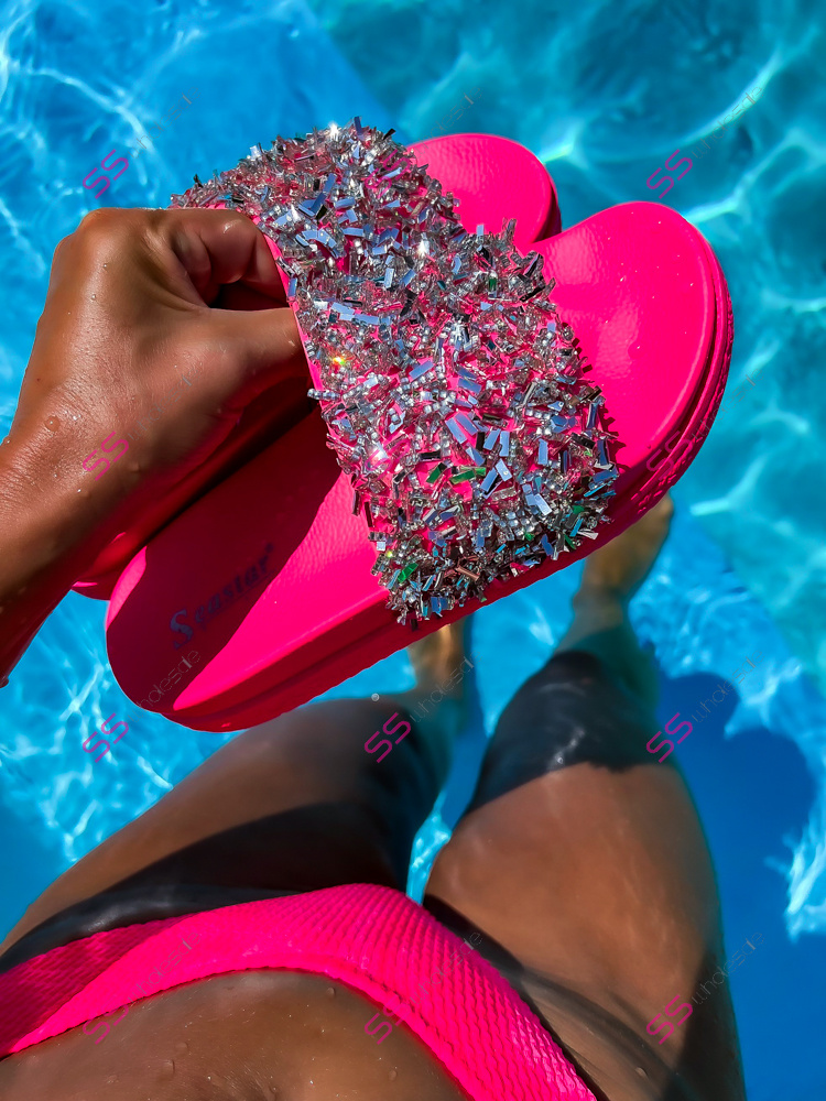 Platformové šľapky zdobené kamienkami RONY-