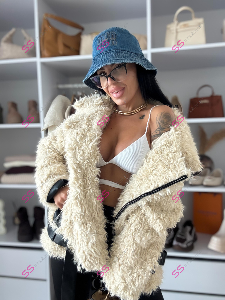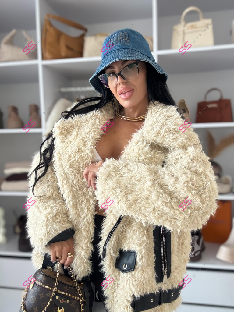 Kožušinková bunda s koženkovými detailmi POLETT+