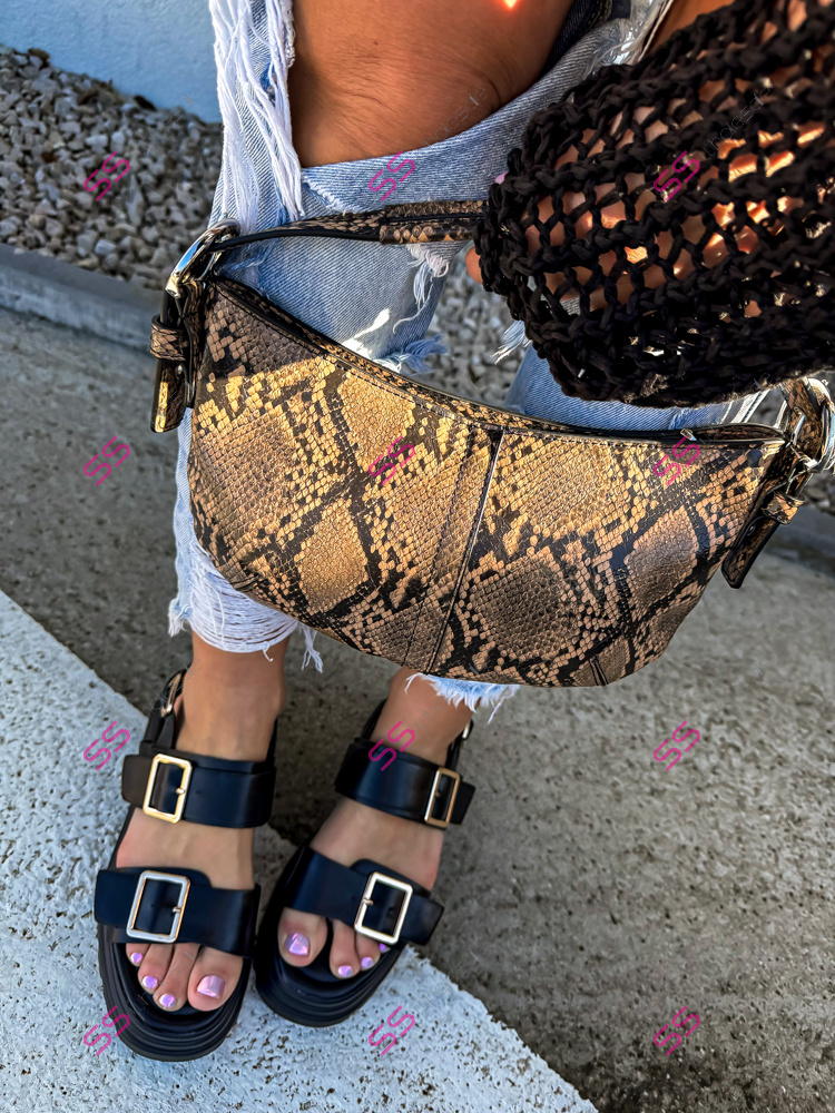 Dámske sandále na každú príležitosť. Doplnky majú zlatú farbu.