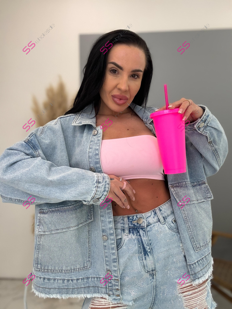 Dámsky denim kabát. Gombíky majú striebornú farbu. Materiál je minimálne elasticky. Modelka mala na sebe veľkosť S!