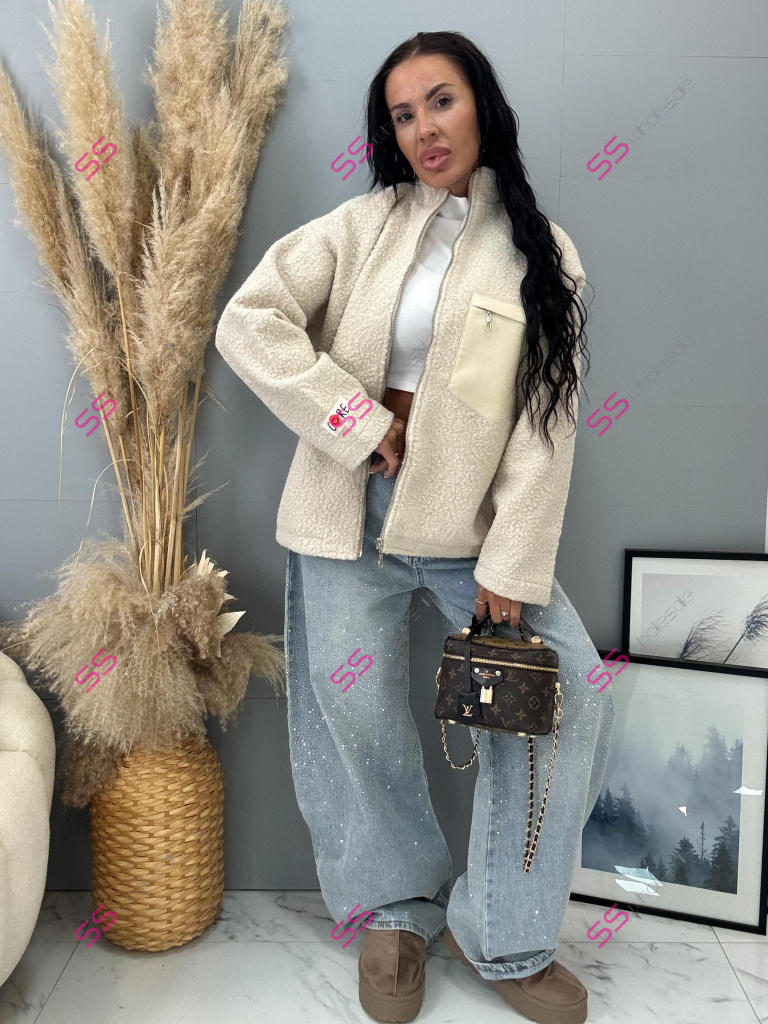 Ľahký kabát je vyrobený z príjemného teplého materiálu. Detaily sú v striebornej farbe.