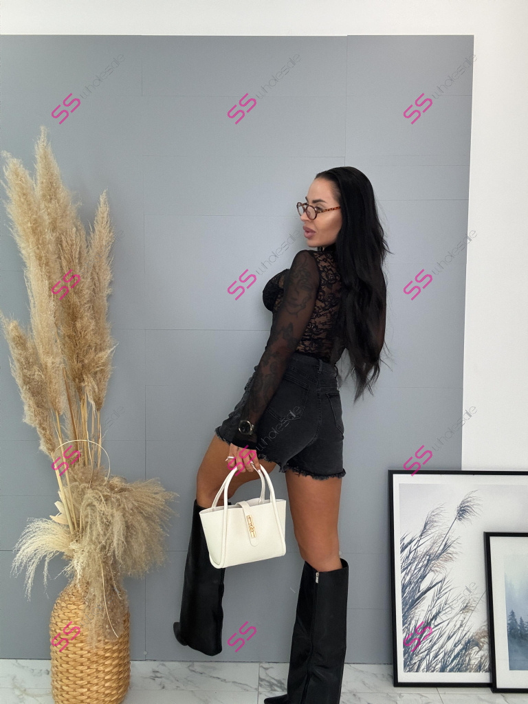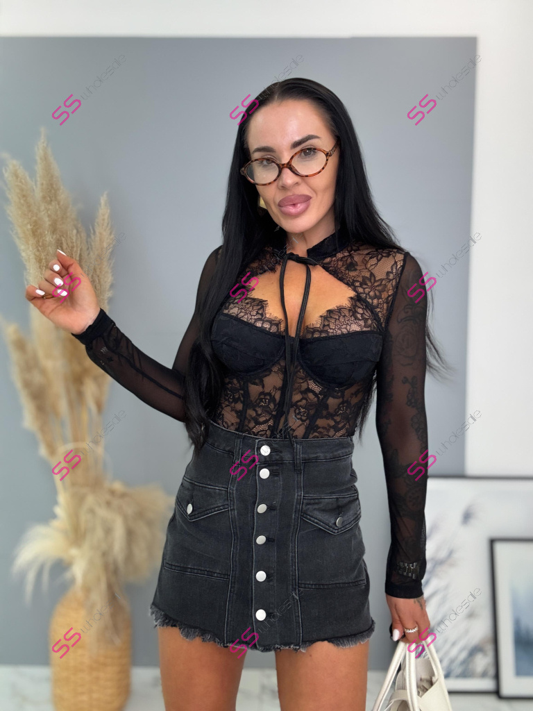 Modelka meria 164 cm a váži 57 kg. Nosí veľkosť S.