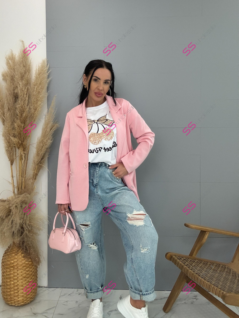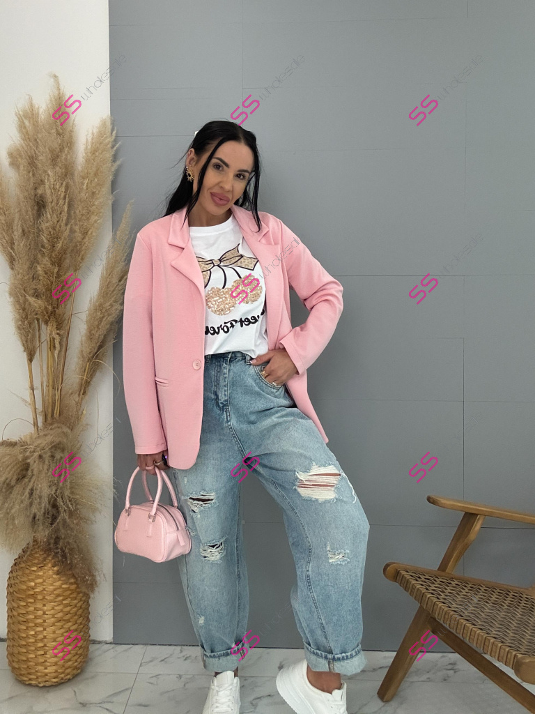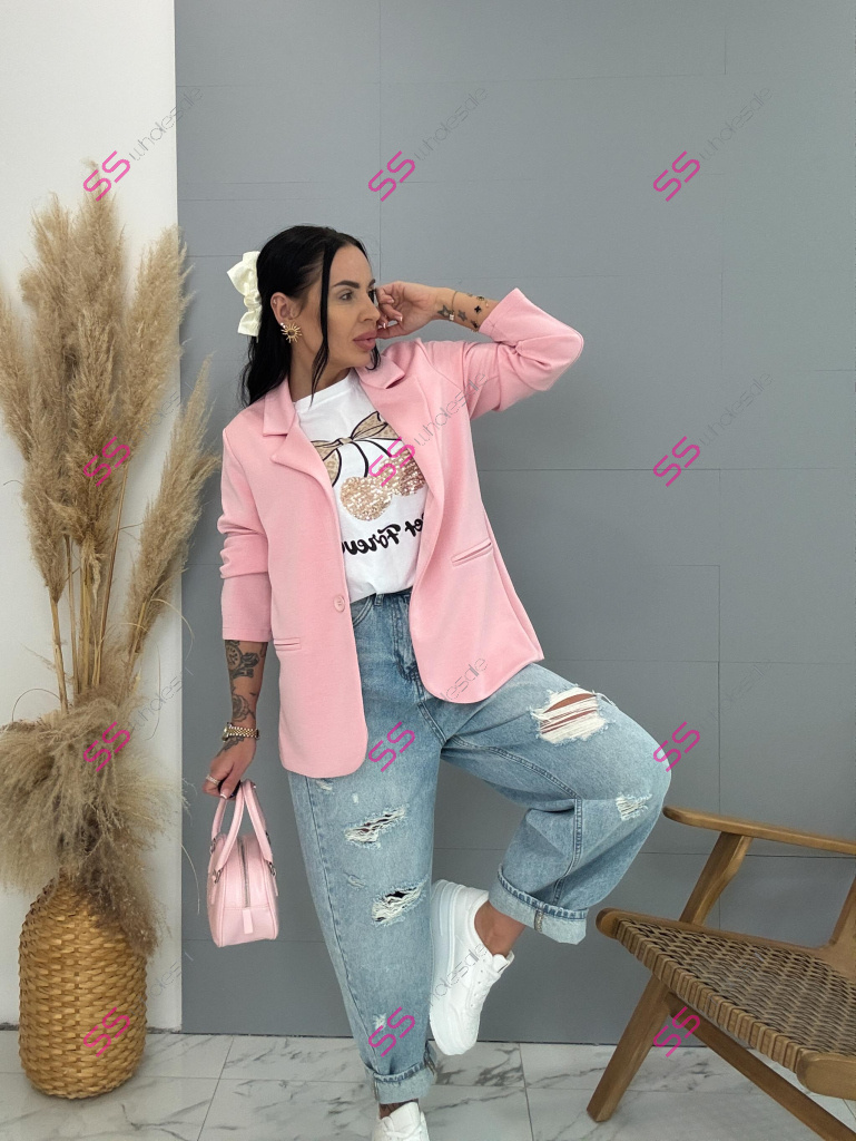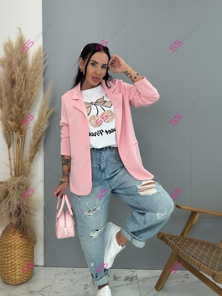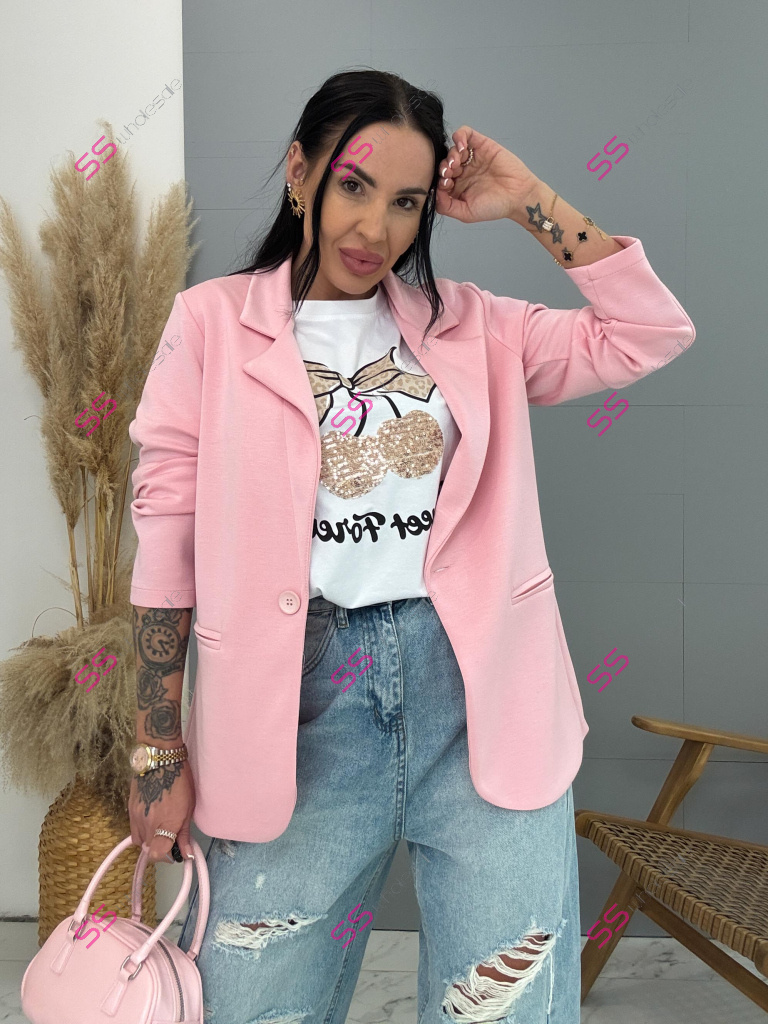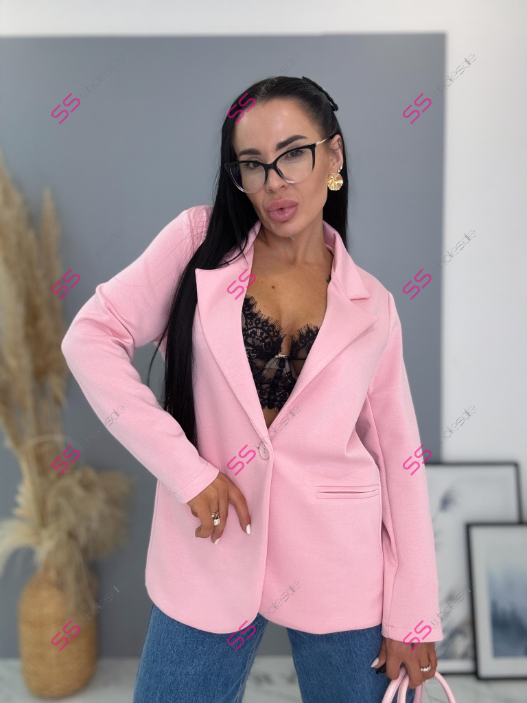 Dámske sako z príjemného materiálu. Materiál je elastický. Sako sa zapína na jeden gombík.