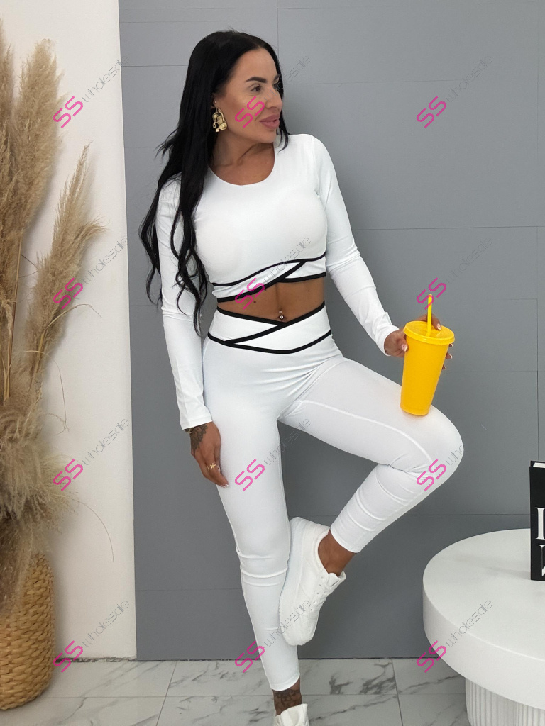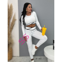 Módny komplet pre extravagantné ženy. Set pozostáva z dlhého rukávu crop-topu a legín. Materiál je elastický, nepriehľadný, kvalitný, ktorý zakrýva nedostatky pokožky. Nohavice majú gumený pás.