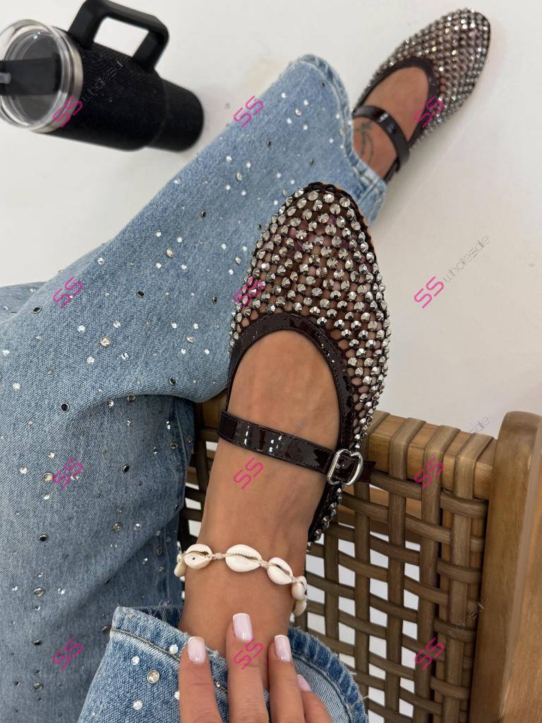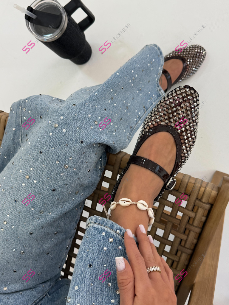 Sieťované hnedé balerínky zdobené kamienkami KALIN