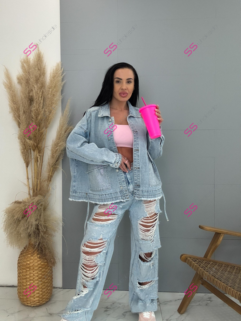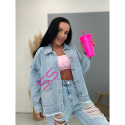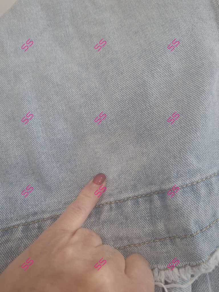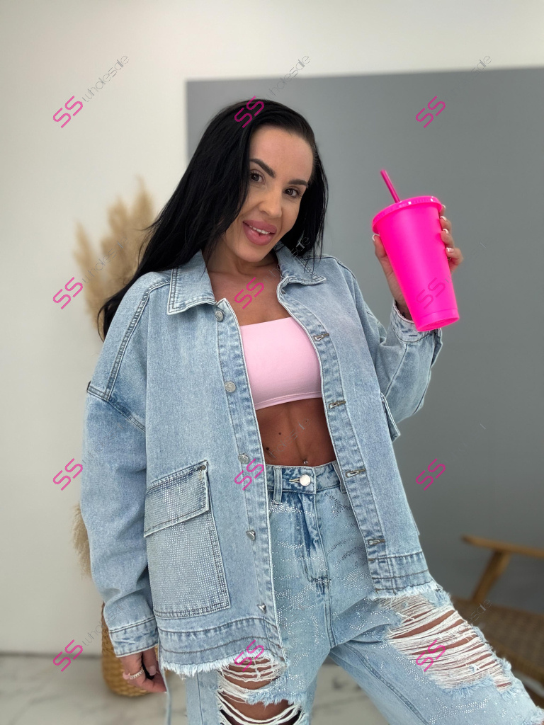 Dámsky denim kabát. Gombíky majú striebornú farbu. Materiál je minimálne elasticky. Modelka mala na sebe veľkosť S!